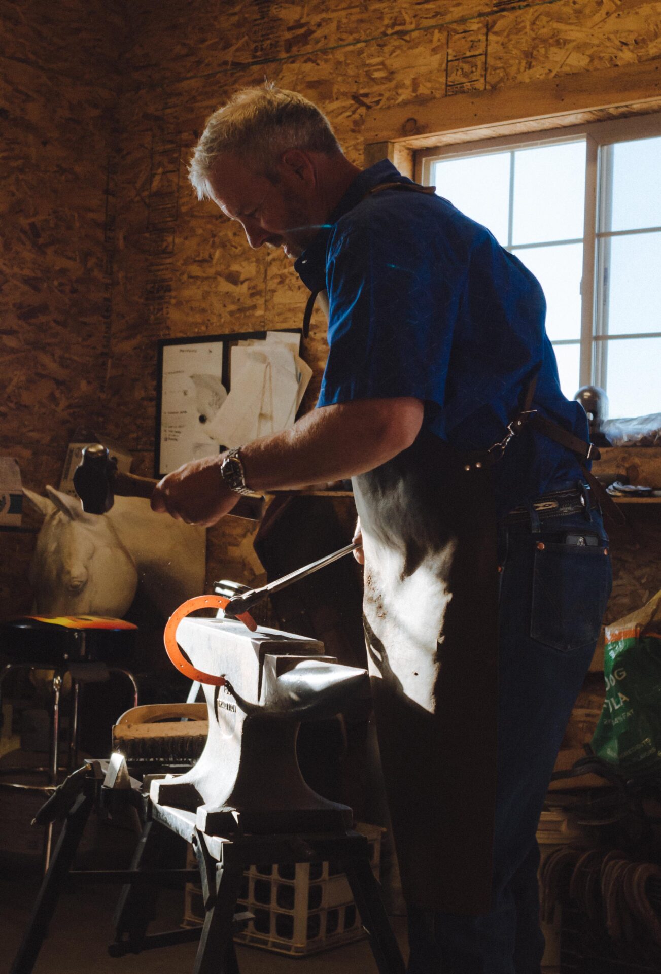 I have been a farrier since 2004, shoeing horses in California, Utah, Wyoming, Colorado, Oklahoma, and Kentucky. I have also bred, raised, trained, and shown Arabians and Quarter Horse/ Arabian Cross horses in reining and working cow horses. My stallion and I earned multiple national awards throughout our showing career. My farrier work is sculpting live tissue based on the physics and anatomy of the horse. I have brought that sculpting work into my blacksmithing art.